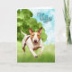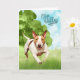 Running through the tall summer grasses in a green open meadow is a cute English Bull Terrier dog with a joyful look on it's face to create a fun watercolor congratulations card for a reBARKable person.