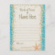 Une activité ludique pour tous les événements - des invités invitations pour donner de la sagesse ou des conseils qui seront certainement appréciés. Les cartes de conseil aident à faire un bon gardien. Cette carte comporte une parties scintillant de confetti océanique avec arrière - plan de sable. Conçu par Amelia Carrie et vendu par zazzle.com/GlitterInvitations et GlitterInvitations.com Note : Il s'agit d'une reproduction graphique et ne contient AUCUNE parties scintillant désordonnée.