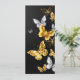 Or, bijoux et papillons blancs sur arrière - plan noir. Papillon doré.