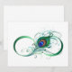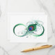 Le symbole de l'infinity with a bright, green, artistic peacock feather on a white background. Tattoo style.