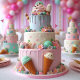 PLAISANTE GLACE THEMED ANNIVERSAIRE DE ENFANT LAYER GÂTEAU À L'AVANT DE LA CARTE. COPIE COMPLÈTEMENT MODIFIABLE SUR LE DOS.