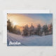 Carte Coucher de soleil sur la forêt gelée de neige près