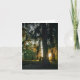Le soleil doré de jour tardif filtre à travers les branches à feuillage persistant pour créer une scène paisible et réconfortante. Texte réconfortant à l'intérieur.
