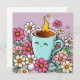 Carte Coupe Whimsical de Café Chaud et Fleurs