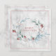 Une carte de vacances délicate inspirée de la nature, de forme carrée, avec une couronne peinte à l'aquarelle dans des nuances de vert sarcelle vaporeux avec des baies rouges éparpillées partout. Un fond texturé enneigé ajoute au thème hivernal. Le modèle de texte comprend un message de Joyeux Noël à l'extérieur et un exemple de message à l'intérieur de la carte. Tout ce texte peut être personnalisé avec le texte souhaité, ou vous pouvez le laisser tel quel.