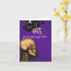 Crâne avec colonne vertébrale sur un arrière - plan violet, avec or et roses noirs. Ajoutez votre propre message à l'avant et à l'intérieur. Peut être utilisé pour n'importe quelle occasion, obtenir bien, anniversaire, félicitations, etc. Convient pour les goths, les rochers et le style alternatif folk.