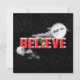 CROYEZ le texte avec pleine lune et bonhomme de neige en flocons de neige. Père Noël et silhouette de traîneau sur la lune avec nuages.