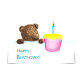 Ce petit ours brun veut vraiment manger son cupcake rose d'anniversaire avec glaçage jaune, mais il doit attendre que ses amis arrivent pour sa fête d'anniversaire ! Quelqu'un a mis le cupcake hors de sa portée, en garantissant qu'il ne sera pas en mesure de l'attraper - ou peut-il l'attraper ? Regardez le dos de cette carte pour voir comment il l'a fait ! Toute personne qui a une dent douce qui a eu à faire face à l'envie occasionnelle de cupcake peut se rapporter à l'ours d'anniversaire dans cette situation.