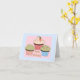 Une carte d'anniversaire de couleur douce accentuée de trois succulents cupcakes gelés. Parfait pour les amis et la famille.