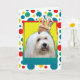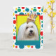 Célébrez un anniversaire avec cette carte de voeux fantaisiste Coton de Tulear Chien. Avec un cupcake équilibré sur sa tête, ce design ne manquera pas d'apporter un sourire et des rires ! BTW, Cette conception a plusieurs versions, avec différentes couleurs arrière - plans. Il y a aussi une invitation à une version Party.