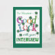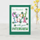 A Good Luck with your Intervieting card to personal, with brightly coloured lettering, four-leaf clovers and a horseshoe for luck! A text-based, digital design by Judy Adamson, you can add the recipients name to the front and change the inside message if you wish.