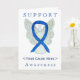 L'ange gardien salue ou la carte de note présente l'image d'une peinture d'ange ruban bleu de conscience. La carte indique "Soutien<Your Cause Here>Sensibilisation". Ajoutez vos propres mots ou message optionnels à la carte de voeux pour les cartes pour notes de sensibilisation à l'art de l'ange personnalisé ! Vous pouvez également supprimer le texte d'une carte d'ange d'art uniquement. Les cartes de voeux d'art de peinture d'ange de la conscience bleue peuvent être customisées de messages personnalisés pour faire une grande conscience cause des cartes d'art pour les collecteurs de fonds, des cadeaux de sensibilisation, ou d'autres événements spéciaux. Donnez cette carte d'art ange comme un cadeau de ruban de conscience pour toute occasion.