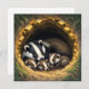 Carte blanche mignonne avec l'illustration d'un badger de maman et de ses bébés qui font la sieste dans leur tunnel souterrain appelé sett.