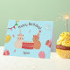 Faites un petit jour de plus spécial avec la carte d’anniversaire Cute Kitty Cats Blue ! Cette adorable carte comporte au centre deux chats prêts à la fête, l'un léchant la crème de sa patte, l'autre assis à côté d'un gâteau d'anniversaire, tous deux portant des casquettes d'anniversaire gais. La scène est entourée d'éléments d'anniversaire amusants comme des serpentines, des cadeaux emballés, des ballons et une bannière colorée, le tout dressé contre un arrière - plan bleu. En haut, il est écrit "Joyeux anniversaire !", et en bas, il y a un espace personnalisable pour le nom de l’enfant. L'intérieur est vide, vous donnant de la place pour écrire votre propre message doux ou votre souhait d'anniversaire.