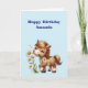 Carte anniversaire avec une adorable illustration. Un petit poney marron se régalant de marguerites.