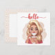 Carte Cute Retro Girl Blonde Flat Hello Card
