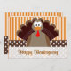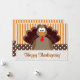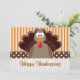 Carte Cute Cartoon Turquie Bon thanksgiving plat. Pois Brown et blancs et rayures orange.