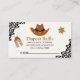Traiga un paquete de pañales de cualquier tamaño para que a cambio gane un premio especial! Tarjeta de rifa de pañales con Hermosa Tematica de Vaquero con la Frase " A LITTLE COWBOY IS ON THE WAY" con linda tipografia en color cafe y negro y un fondo amarillo claro es ideal para recibir a ese pequeño Vaquero que viene en camino!. Los elementos coincidentes están disponibles.