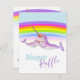 narval peint à la main et chiot avec arc-en-ciel graphique coloré, cartes de tirage au baby shower. Parfait pour vous de demander des couches ou des couches pour que vous puissiez échantillonner différents types et vous aider à choisir le type que vous préférez et votre invité peut avoir la chance de gagner des prix à votre baby shower aussi. Peinture à l'aquarelle à la main et graphisme arc-en-ciel par Sarah Trett pour www.mylittleeden.com seulement sur Zazzle.