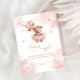 Embarquez dans un voyage de douceur et d'anticipation avec notre adorable article, où chaque détail est conçu pour remplir les coeurs de joie et d'excitation. Ce design charmant présente un ours bébé chéri, orné d'une belle robe rose, des ballons dorés accrochés aux délicats accents floraux de sa patte. Dans un décor de tons pastel doux, chaque élément dégage un charme fou, ouvrant la voie à une célébration remplie d'amour et de précieux moments. Avec ses images délicieuses et ses détails chaleureux, les objets promettent un baby shower aussi adorable et mémorable que l'ours bébé lui-même. Éléments correspondants disponibles.