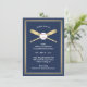 Compliment navy bleu et or fête d'anniversaire ou bar mitzvah invitations avec élégantes cartes de base-ball thème de la réception. Tout le texte est simple à customiser ou à supprimer au besoin. La carte comprend tous les détails de célébration de votre choix tels que l'emplacement de la fête, la date, l'heure, le site Web, les noms des hôtes, etc. Le design comprend des chauves-souris de baseball en faux film, une typographie d'inspiration art déco classique et une bordure bleu marine, or et blanc. Veuillez noter que l'or est imprimé en couleur et non en métal.