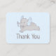 Carte de remerciements avec un joli petit éléphant souriant tenant un crayon bleu. La conception est personnalisable et vous pouvez personnaliser le texte.