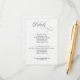 Provide your guests with all the essential information in style with the Black and White Wedding Details Card. Designed to coordinate perfectly with Script calligraphy invitation suite, this card keeps travel, accommodation, and schedule information organized while maintaining the romantic, elegant aesthetic of your wedding stationery.