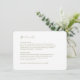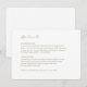 Moderne, chic et simple. Ces cartes de détails mariages comportent un texte de détail mariage, un code QR pour le site Web et un ensemble contemporain de polices en vert olive, contre un arrière - plan blanc immaculé, à la fois à l'arrière et à l'avant.
