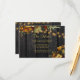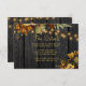 Elégante et rustique fin d'été ou d'automne hébergement mariage de automne, directions, et autres informations carte d'enceinte avec script de typographie or sur le bois de grange brun foncé avec de beaux bouquets botaniques floraux avec feuillage et feuilles séchés, et lumières à cordes. ++++++++++++++++++ La carte est adaptée aux mariages de jardin extérieur à fleurs de campagne ou de ferme.