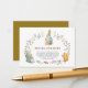 Add a thoughtful touch to your invitations with this adorable Book Request enclosure card! Iconic Peter Rabbit reading his tale, surrounded by a whimsical wreath of blossoms, leaves, squirrel, and a tender scene of bunny family in a rocking chair with blue blanket and greens. Ideal for classic Beatrix Potter, nursery, or spring baby showers. Fully editable, high-quality print, matches invites, signs, napkins, and plates beautifully.