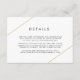 Mariage géométrique moderne détails carte boîtier avec deux lignes dorées, l'une en haut à gauche et l'autre en bas à droite sur un arrière - plan blanc. Un design minimaliste qui reste chic et design.