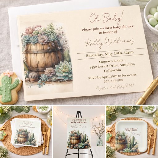 Rustic Succulents & Cacti Baby Shower Party RangeConçu par Printable Pics