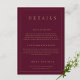 Carte D'accompagnement Burgundy & Or Simple Formel Détails du Mariage
