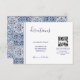 Carte d'insertion de direction mariage bleu. Modifiez facilement les couleurs de police en cliquant sur le bouton Modifier l'outil de conception. Ajoutez votre propre code QR afin que les invités puissent facilement RSVP et voir plus de détails sur votre site Web. Trouvez la suite d'invitation correspondante et plus dans notre boutique - la collection de tuiles méditerranéennes -. Contactez-nous pour plus de produits correspondants.