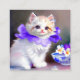 Carte D'accompagnement Chat blanc avec collier de fleurs violettes