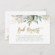 Ces élégantes cartes de demande minimalistes pour livres pour bébés sont dotées d'une verdure à l'aquarelle branchée et de feuilles botaniques sur un arrière - plan blanc épuré avec un script moderne en faux or.