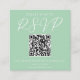 Cette carte RSVP mariage vert menthe douce comporte un script blanc chic et un code QR du site Web pour une cérémonie extérieure de printemps douce. Une typographie simple et élégante sur un invitation vert pastel et massif et tranquille pour un espace jardin.