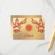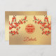 Jolies branches de fleurs de cerisier rouge et un double symbole de bonheur sur un arrière - plan d'or. Combinaison de costume mariage et autres produits correspondants disponibles pour un mariage chinois moderne. Ajoutez un code qr à l'arrière pour plus de détails sur votre site web mariage et rsvp en ligne.
