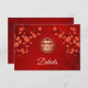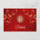 Jolies branches de fleurs de cerisier rouge et un double symbole de bonheur sur un arrière - plan rouge rubis chatoyant. Combiner le costume mariage et d'autres produits assortis avec ce mariage chinois traditionnel disponible. Ajoutez un code qr à l'arrière pour plus de détails sur votre site web mariage et rsvp en ligne.