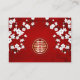 Cerisiers blancs fleurit sur un arrière - plan rouge rubis chatoyant avec un double symbole de bonheur en or carte RSVP de mariage chinois. Analysez-moi la carte de code qr pour plus de détails sur votre site Web mariage et rsvp en ligne.