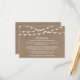 Simple mais élégant, les lampes à cordes de la collection rustique mariage burlap est un design étonnant avec de belles lumières à cordes blanches suspendues sur un arrière - plan effet burlap, qui est parfait pour toute célébration mariage rustique. Ces cartes d'encart peuvent être personnalisées pour votre occasion spéciale et rendraient parfait les détails, l'information, l'hébergement, l'orientation, le registre des cadeaux ou la carte de voeux pour votre mariage, douche nuptiale, fête de fiançailles, fête d'anniversaire et bien d'autres occasions spéciales. Ajoutez votre libellé personnalisé à cette conception à l'aide des cases "Modifier ce modèle de conception" situées à droite de l'élément, ou cliquez sur le bouton bleu "Customiser" pour arranger le texte, modifier les polices et les couleurs et ajouter des informations ou des images supplémentaires à cette conception. AFFICHER LES ÉLÉMENTS CORRESPONDANTS POUR CETTE COLLECTION