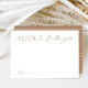 Cartes simples d'insertion de graduation avec "Conseil pour le Grad" en lettres modernes brun clair/tan. La carte de conseils de graduation se retourne pour afficher un motif à rayures blanches et bronzées. Faites glisser le conseil pour les cartes d'études supérieures avec vos invitations à la fête de remise des diplômes ou les annonces de remise des diplômes afin que vos amis et votre famille puissent les remplir à l'avance. Les conseils que partagent vos proches seront appréciés pendant des années.