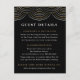 Vous avez un thème de mariage Gatsby le Magnifique ? Fournissez à vos invités tous les autres détails spécifiques du mariage. Cette carte de détails pour invité de mariage art déco présente une conception de guirlandes dorées et blanches sur un fond noir riche et une formulation blanche. Personnalisez-la et faites-en vôtre. Vous pouvez modifier la formulation, la couleur, les tailles. Le dos a un motif art déco et il est parfaitement assorti à la "collection de mariage Art Déco avec guirlandes", à retrouver dans ma boutique zazzle.
