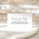 Cette simple carte de baby shower de calligraphie demande d'enclos est parfaite pour un baby shower rustique. Le design sobre et élégant présente une typographie de script classique et sophistiquée en noir et blanc.