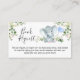 Baby shower éléphant Foliage Demande de Carte de boîtier Sweet boy's aquarelle éléphant baby shower demande carte de boîtier avec un éléphant mignon, un ballon bleu bébé et quelques feuilles d'eucalyptus. Idéal pour un petit baby shower à thème d'éléphant.