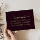 Cette carte de demande de recette de mariage en Bourgogne doré est parfaite pour une fête de mariage rustique. Le design présente une belle police de calligraphie dorée sur fond bordeaux pour embellir votre événement.