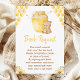 Cette carte de demande d'aquarelle mignonne et capricieuse comporte un adorable ours appuyé sur un pot de miel, d'abeilles, d'abeilles, d'abeilles, d'arrangements floraux et de ballons. Le texte combine écriture manuscrite et polices sans serif pour un look élégant et moderne. C'est parfait pour un baby shower à thème abeille ou ours.