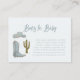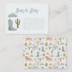 Carte de demande de baby shower à thème cowboy mignonne avec illustration de bottes de cowboy, casquette, et un cactus. La carte demande aux clients d'apporter un livre pour enfants neuf ou d'occasion au lieu d'une carte.