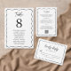 Black & White Détails Mariage Carte de boîtier - Wavy Frame Portrait QR Code Insertion Élégante et moderne avec une touche audacieuse, cette carte de boîtier mariage noir et blanc de 3,5" x 5" dispose d'un front blanc éclatant bordé d'un cadre ondulé noir. Conçue en orientation portrait, la disposition comprend trois sections clairement définies (Réception, Hébergements et Site Web), chacune avec des sous-titres en italique et des interpactions décoratives pour un look éditorial et raffiné. Un titre manuscrit, "The Details", ajoute une touche personnelle tendance en haut. Sous la dernière section, un code QR personnalisable permet aux clients de scanner et d'accéder instantanément à votre site Web mariage pour obtenir l'itinéraire, les informations sur l'hôtel et les détails de la réception. Le dos de la carte est noir solide pour une finition lisse et polie. Idéal pour les mariages minimalistes, les cravates noires et les couples qui aiment les lignes épurées avec un soupçon de flair. Customisez la vôtre dès aujourd'hui et faites en sorte que la planification soit facile pour vos invités