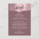 Customisez cette "Details Chic Script Metallic Rose Gold Mariage Enclôture Card" avec un luxueux et chic or rose métallique à deux couleurs et arrière - plan rose vintage, créant un look audacieux et sophistiqué. Un script de calligraphie élégant ajoute une touche de charme intemporel, ce qui en fait un endroit parfait pour les couples à la recherche d'un design moderne mais classique. Veuillez contacter le concepteur du magasin pour plus de personnalisation si nécessaire.